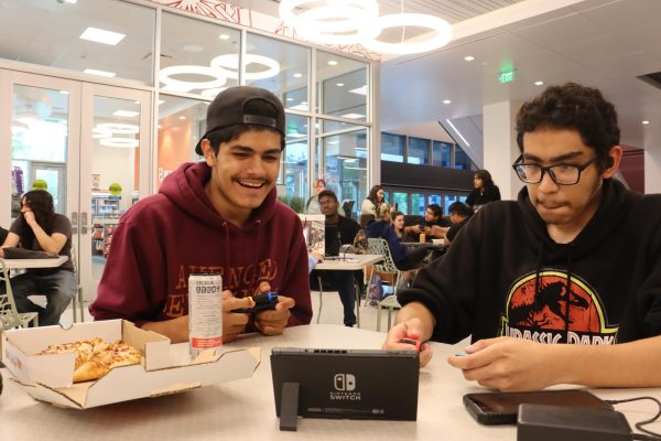 Joaquin Campos, 18, and Jose Perez, 18, share a lighthearted moment playing Super Smash Bros on the lower level of the Student Center, making the most of their downtime before heading to class.